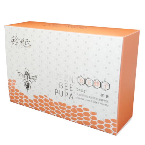 蜂巢氏女王蜂子以零下40。C凍晶技術製作防止其變質,保持胺基酸及其他營養素之活性而製成的【女王蜂子植物膠囊】。